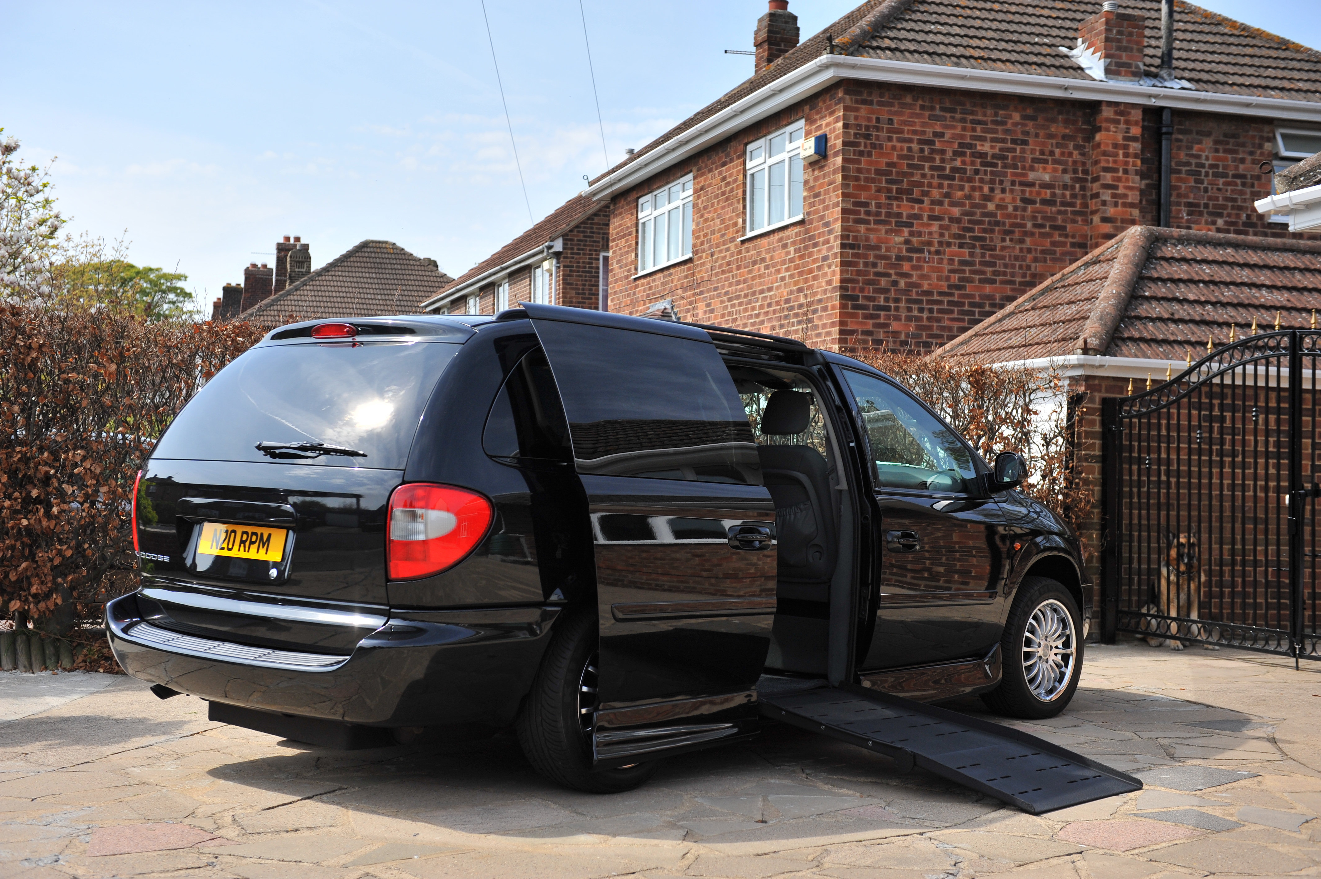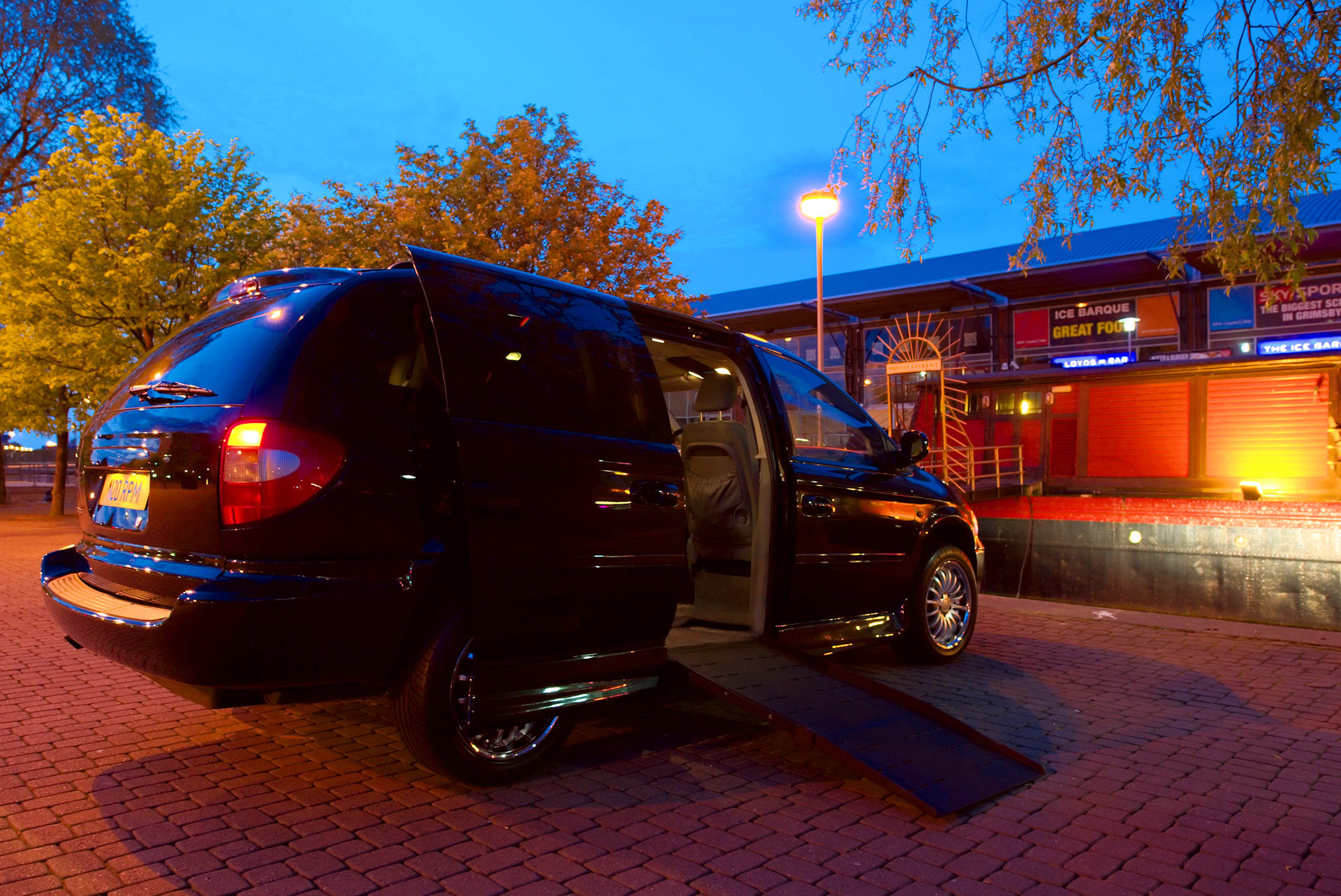 My own van that I drive from a wheelchair at a local pub in my home town in the summer evening.   Lowered suspension not activated so ramp is steeper than usual