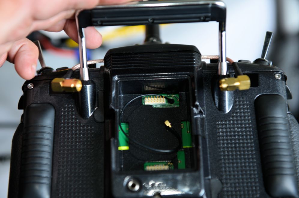 Same as most MODULE transmitters (this one is NOT a module version though) once the rear hatch is removed (slide a credit card under the corners and there are two latches - one each side - and disconnect the TINY gold connector from the board). That's the antenna connector IN GOLD. It simply pushes on and off. Use a magnifying glass and a bit of care. They are not as fragile as they look. In this picture the transmitter BOARD has also been removed. Just pull. Every transmitter is different, all are simple. Google yours to figure out how to disassemble if unsure.