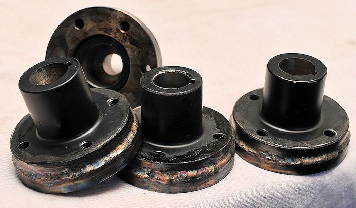 In order to fit the HEGAR alloy split rim wheels, I had to make new wheel adapters. I made four. Because I am building 2 powerchairs. These will be welded to the original Groove motors "hubs" (the black thing)