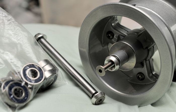 Attention to detail. It matters. HERE are stainless steel bearings so they don't do what most caster bearings do, they never corrode and fail! They bearings on powerchair casters get human and pet hair / fibre wrapped around the axle and under the rubber seals. This lets water in. Water causes corrosion and the bearings die soon after. Stainless steel bearings do not corrode, so do not fail. Also the lightweight 3 spoke alloy wheel is heavily powder coated. And the axle, spacers, and and bolts are also stainless steel. Assembled carefully with loctite bearings, and spacers checked for length and re machined as required. Steel axles, steel bolts, steel bearings, thin paint, and so on just will not do here! The wheel is also carefully balanced. Before fitting to the caster fork. The caster fork is also modified and drilled to allow the axle to pass right through. Because the bolts should NOT take the load! Everything is put together with this much attention to detail and with the best parts. My chairs do not fail or break, and look good years later.