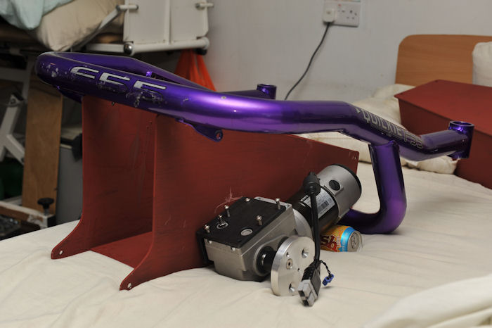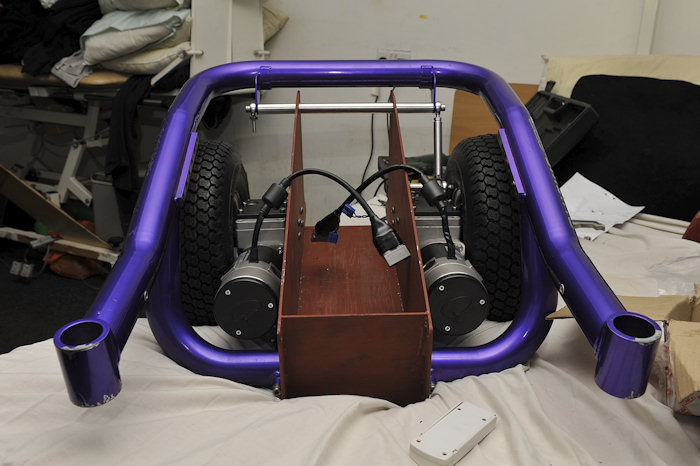 Falling off the bed.... Front view... I don't build my chairs down to a price, like manufacturers do. Instead I build up to the best quality and finish as well as performance as I can. Yet still it always works out hugely cheaper. Depending on how well you buy your gear, how much you pay others for work and how much you can do for yourself. I am seriously cheap! Cost estimate is considerably more than the MK2 6 mph version as the 8.5 mph motors alone are not cheap. And there is the Roboteq controller and lithium batteries, rather than two cheap lead acid (gel) ones to buy... The MK2 BM2 Chair cost around 1700 UK pounds total. The BM3 here when complete will be about 2700 UK Pounds finished to show standard.