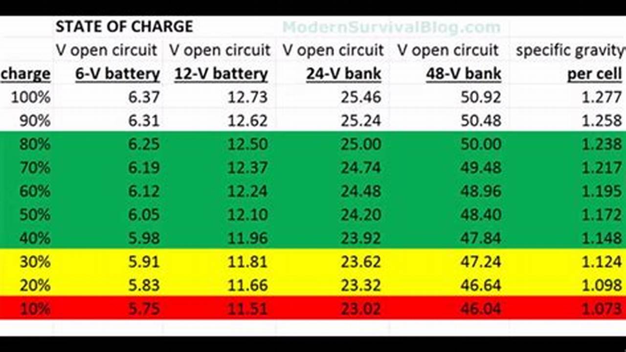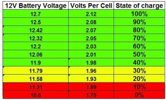 HERE we have 24.2V or 12.1V or according to the charts above about 45% of 50% of the range remaining.