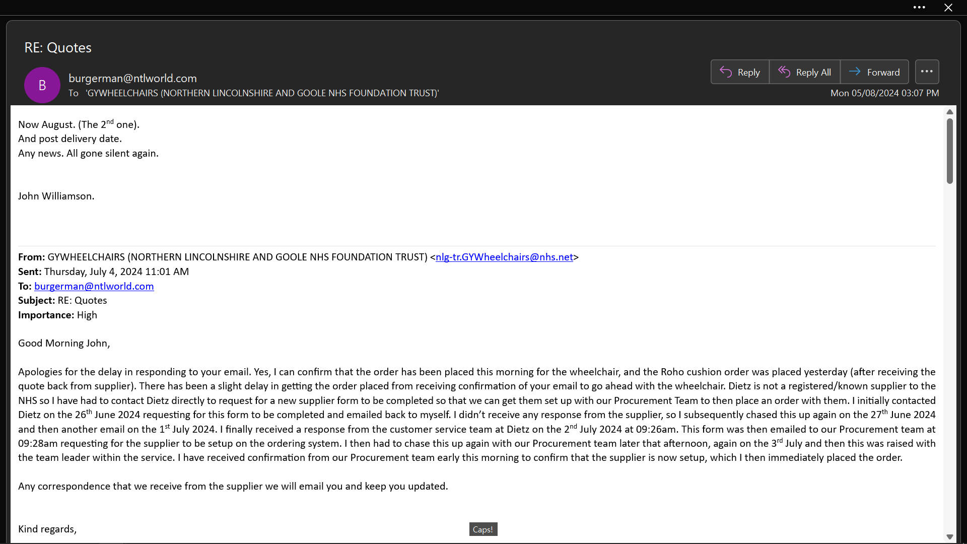 From: GYWHEELCHAIRS (NORTHERN LINCOLNSHIRE AND GOOLE NHS FOUNDATION TRUST)