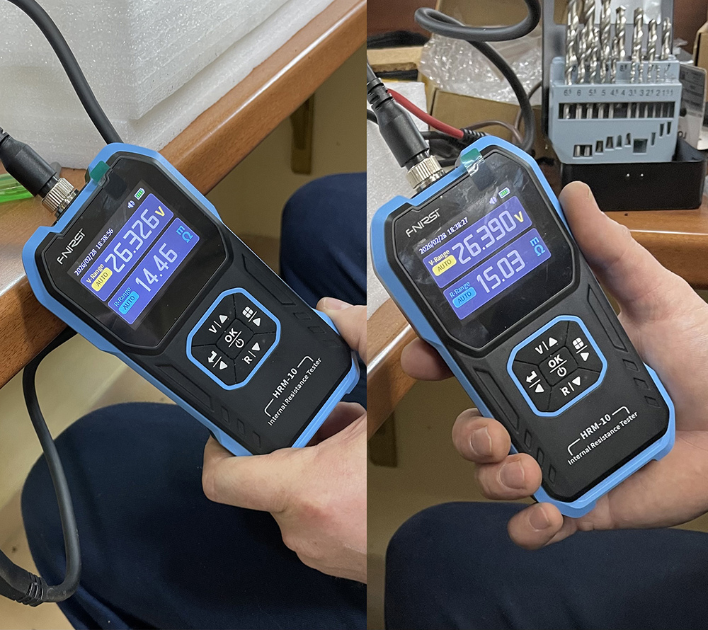 The cells are specified at <3 mΩ internal resistance each. According to the BMS readings, the total resistance of the packs is 14.46 mΩ and 15.03 mΩ respectively.