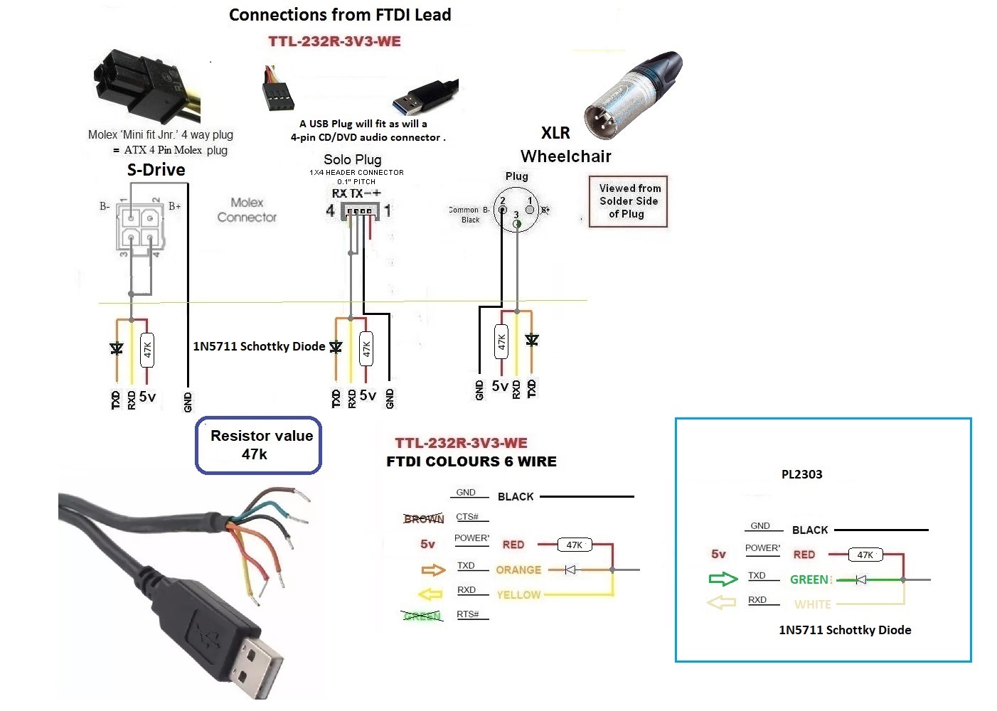 Darrell_LeRoy wrote:This is the first I have heard about an adapter. Looking at the adapter, there is no way to plug the USB to three-pin plug with the white wire with the diode and green wire connected to pin 3 and the black wire from the USB plug connected to Pin 2 of the 3 pin plug.