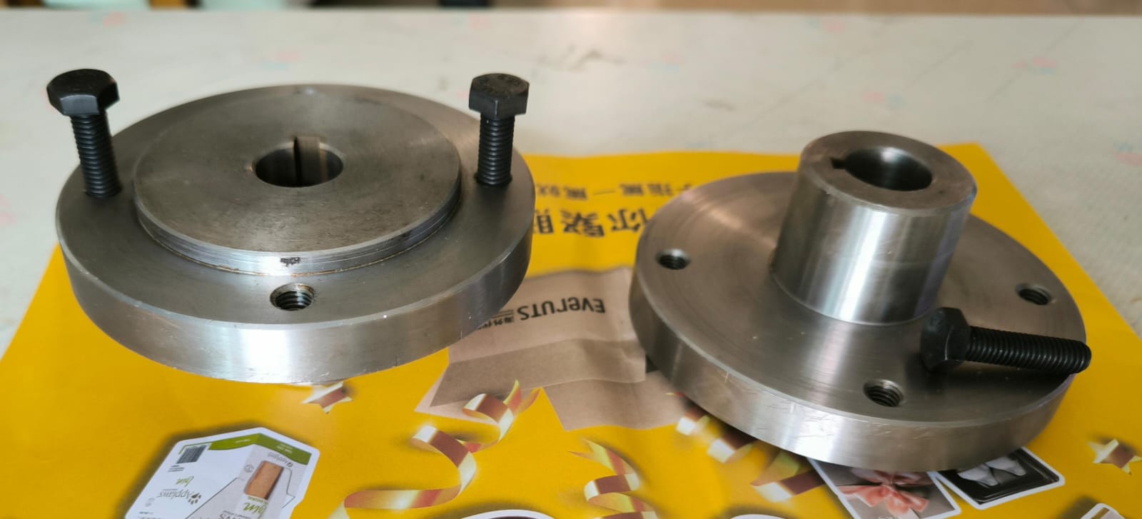 But here it looks flat, with 1mm recess for stainless disk. Disk will need 8mm hole. So will end up with 4 wheel bolts and 1 hub bolt. So 5x M8 bolts. All same, each wheel. So it looks neat! You will see.