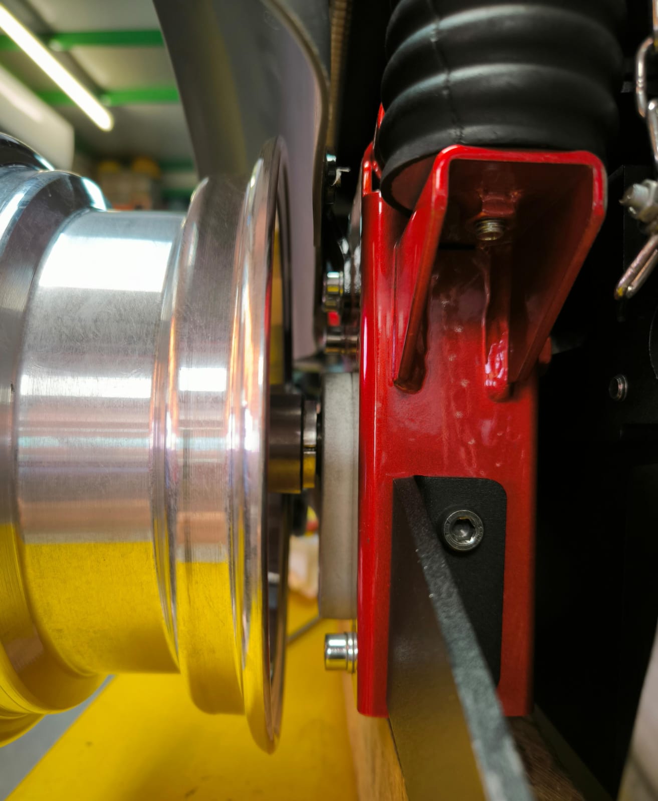 It will be held in place neatly by new stainless wheel bolts and load spreading washers like this (5 per wheel, as a centre one is needed too in the Dietz) - centre one needs blue loctite: