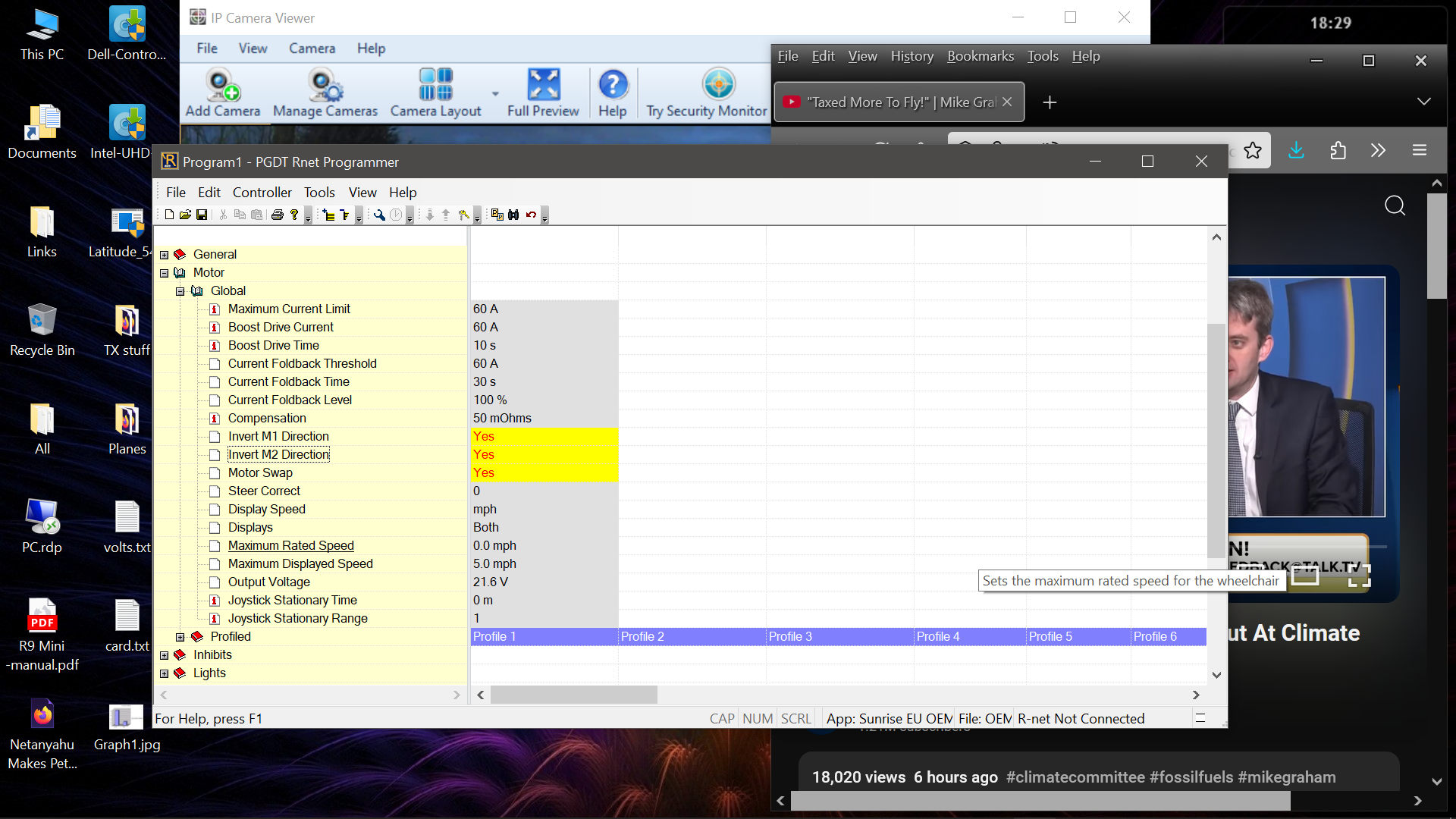 The R-Net system has come off a front wheel drive chair which was working fine and has gone on a rear wheel drive chair. I've changed the parameter in the software regarding front wheel drive from A to B.