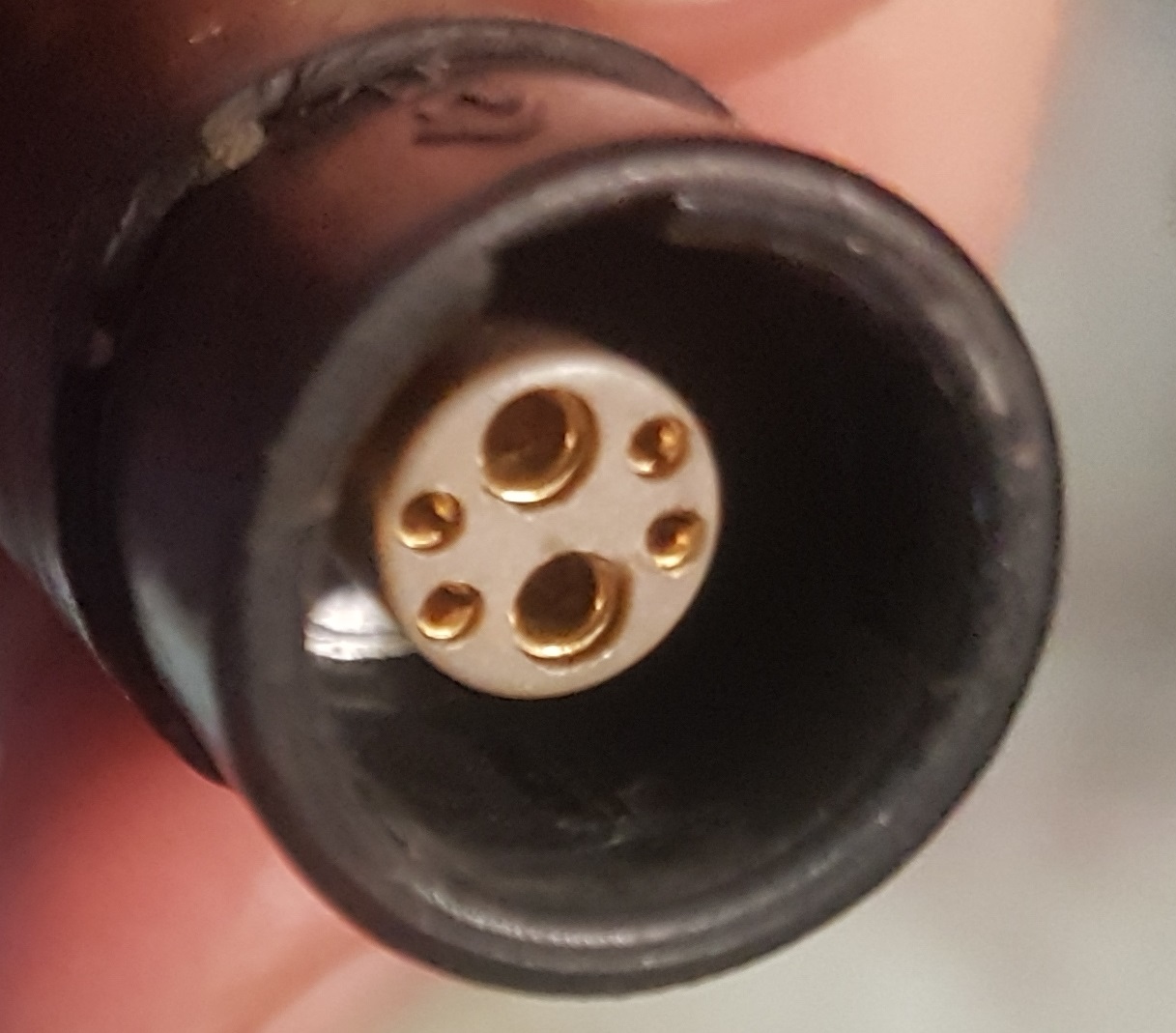 I disconnected the wire with the rapid attachement(see pict) and reconnected it but it did not solve the problem. One thing I have to tell you is that i use the joystic in my hand not having it fixed on a swingaway more practical. So sometimes before I have droped the joystick on the ground and maybe sometimes pulled on the cable too much when using it in my hand on the other side of where it passes. Also there as been a little hole in the protective cable in the past, i repaired it one year ago or so by adding flexible glue but it reopened as we can see it the picture . The inside wires were still wearing their own protective insulation tube at first look, red in the picture.