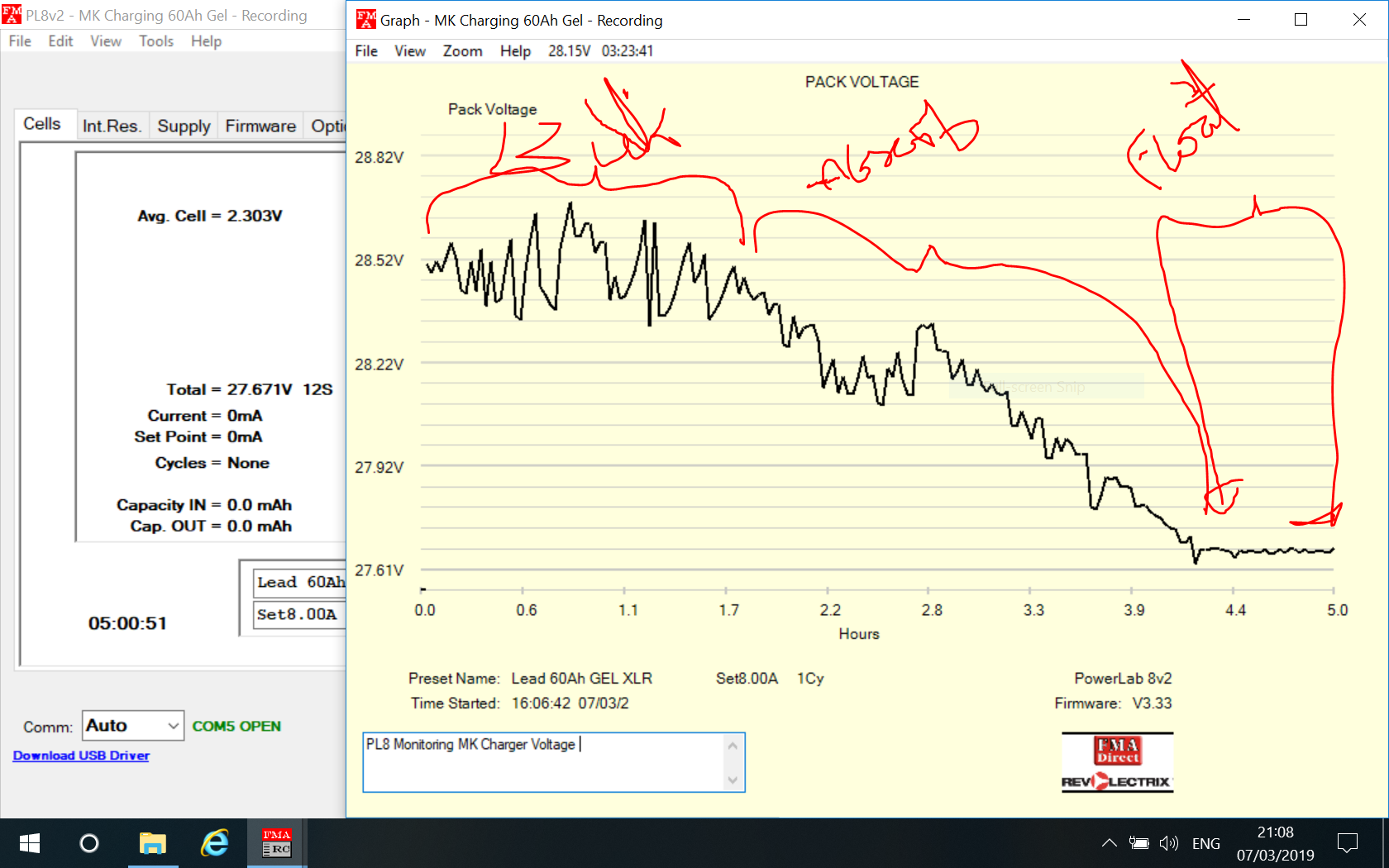 Heres a wildly spiky graph, that was MONITORED by the PL8 hobby charger, so we could see what one of those chargers actuually does. And I still am not sure!
