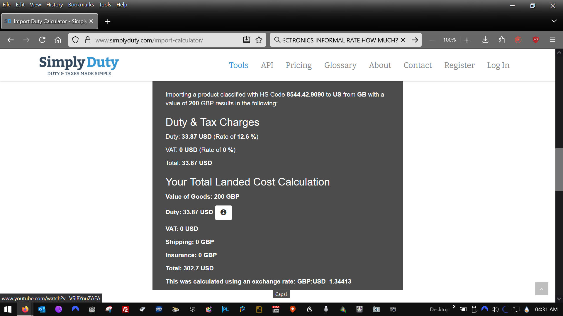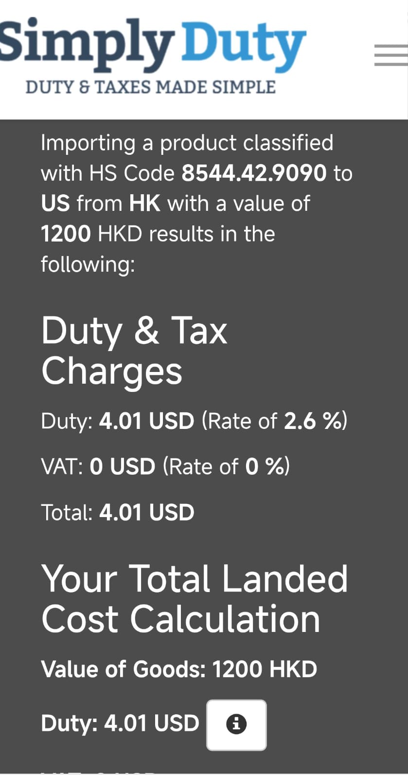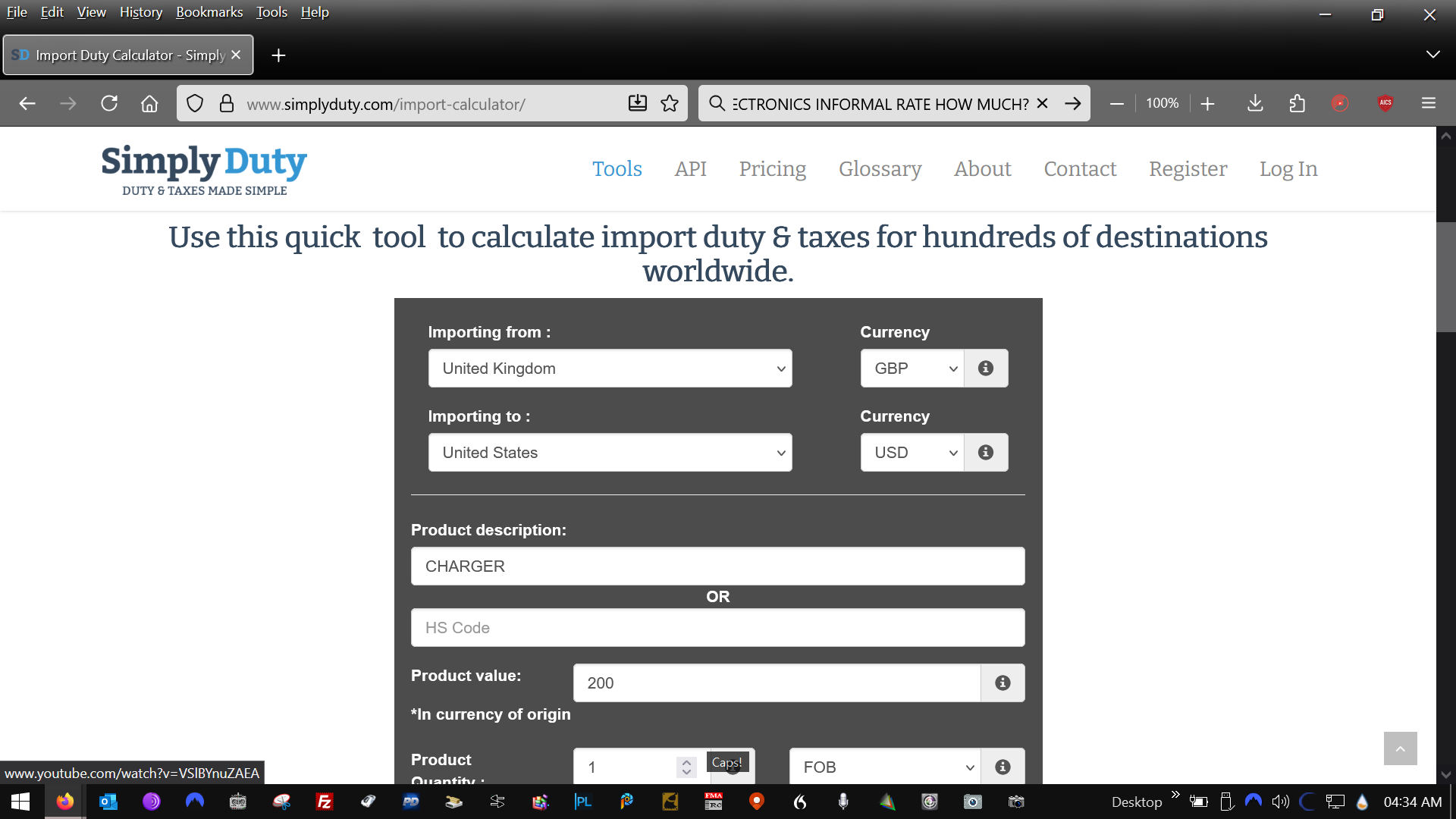 You can also add your sending country and any receiving country. So I put UK to US. Theres no tarrifs or taxes on any shipping costs.