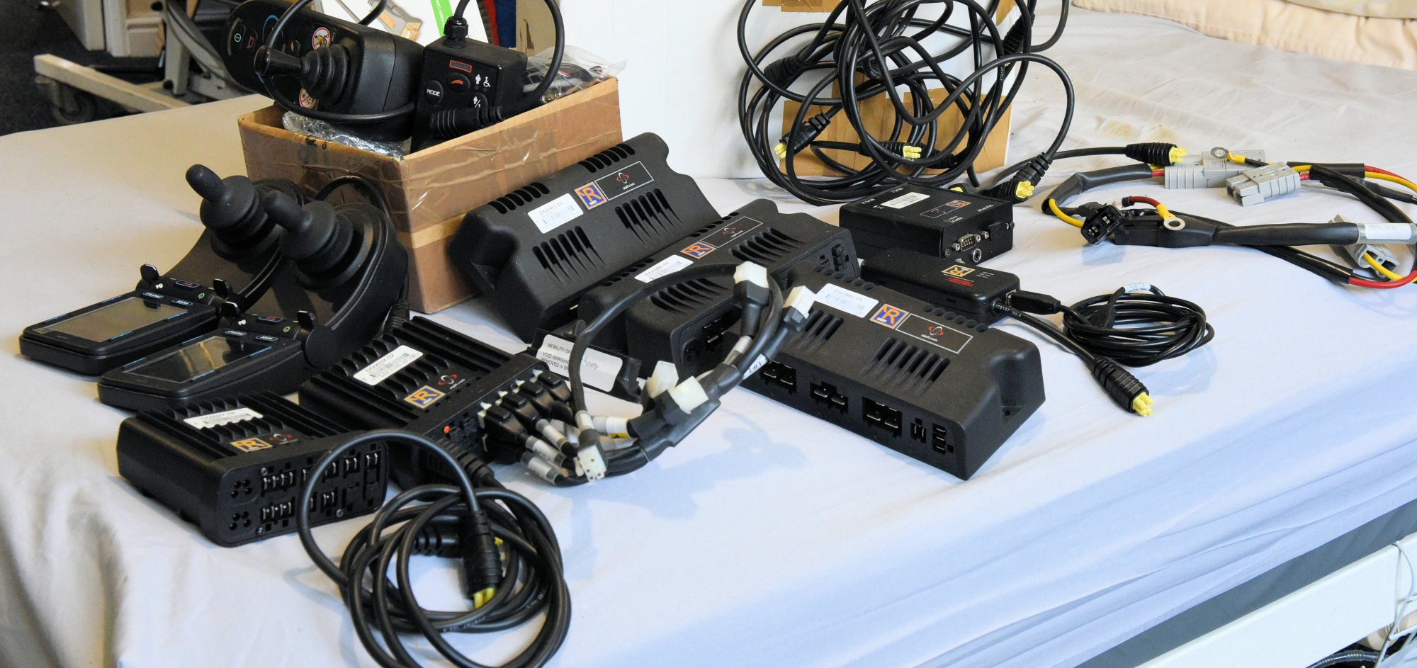 The result of all of this is that I now have EIGHT complete high end R-Net systems either on chairs, or in boxes all bagged, pre programmed and labled as spares. And a few spare modules and joysticks and cables on top!