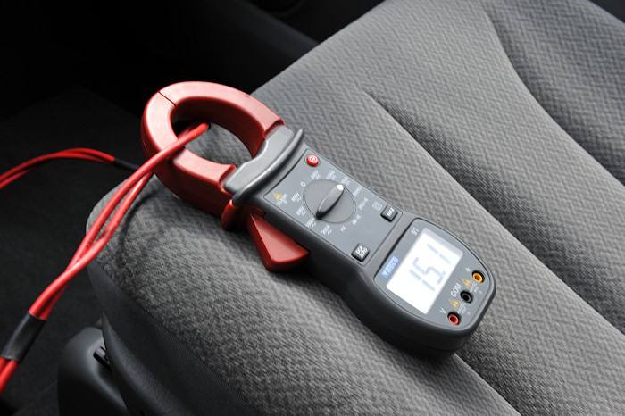 cable, with a clamp Ammeter to show charge current. After 5 to 15 mins it drops