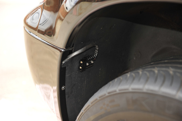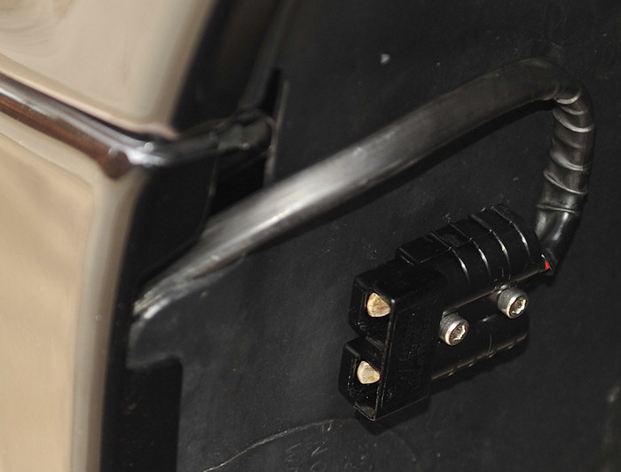 Pretty unobtrusive... Light circle shows the Anderson connector. But 100 amps