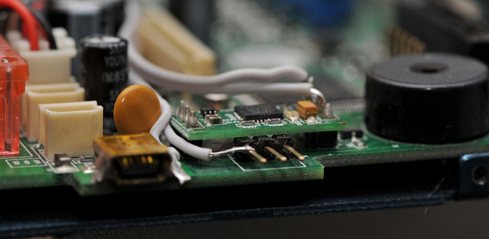 HOW 1. Remove the two side panels. (8 screws) 2. Remove the four screws that hold the top on! Two at the front, two at the rear. 3. Undo the two wire (red/black) plug nearest the edge. It stops you taking the top off. TAKE NOTE WHERE IT COMES FROM! There are two places it can go back, one is wrong, and will not work. (on some boards only) 4. Take out the thin plastic ribbon. The place it is inserted has a locking collar! Don't just yank it out! Lift the top edge/lip of the black socket with a finger nail and the cable ribbon will practically fall out. Same when you replace it. Lock it after you insert the cable. This is actually the control buttons connection on top cover. 5. remove the white multi plug with care. It cant go back wrong so don't worry. This is the display connector. 6. Lift off the top, and leave the big fat power cables connected. Lay it upside down on the other side out of your way. Look at your new Serial Bluetooth adapter. It will have 4 wires: