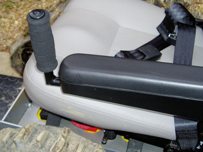Handle to "hold on" on steep downhill and rough ground. Or while driving over