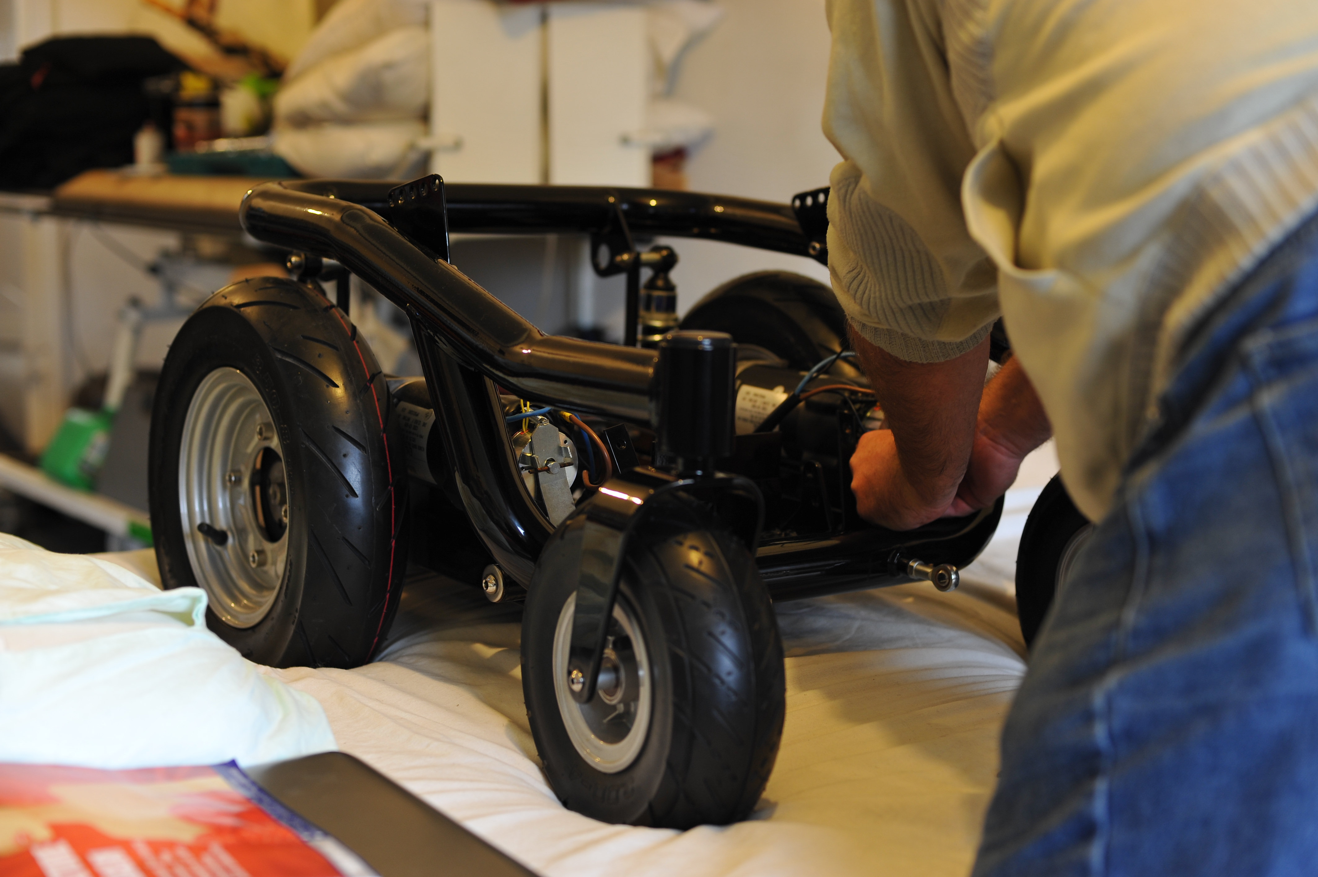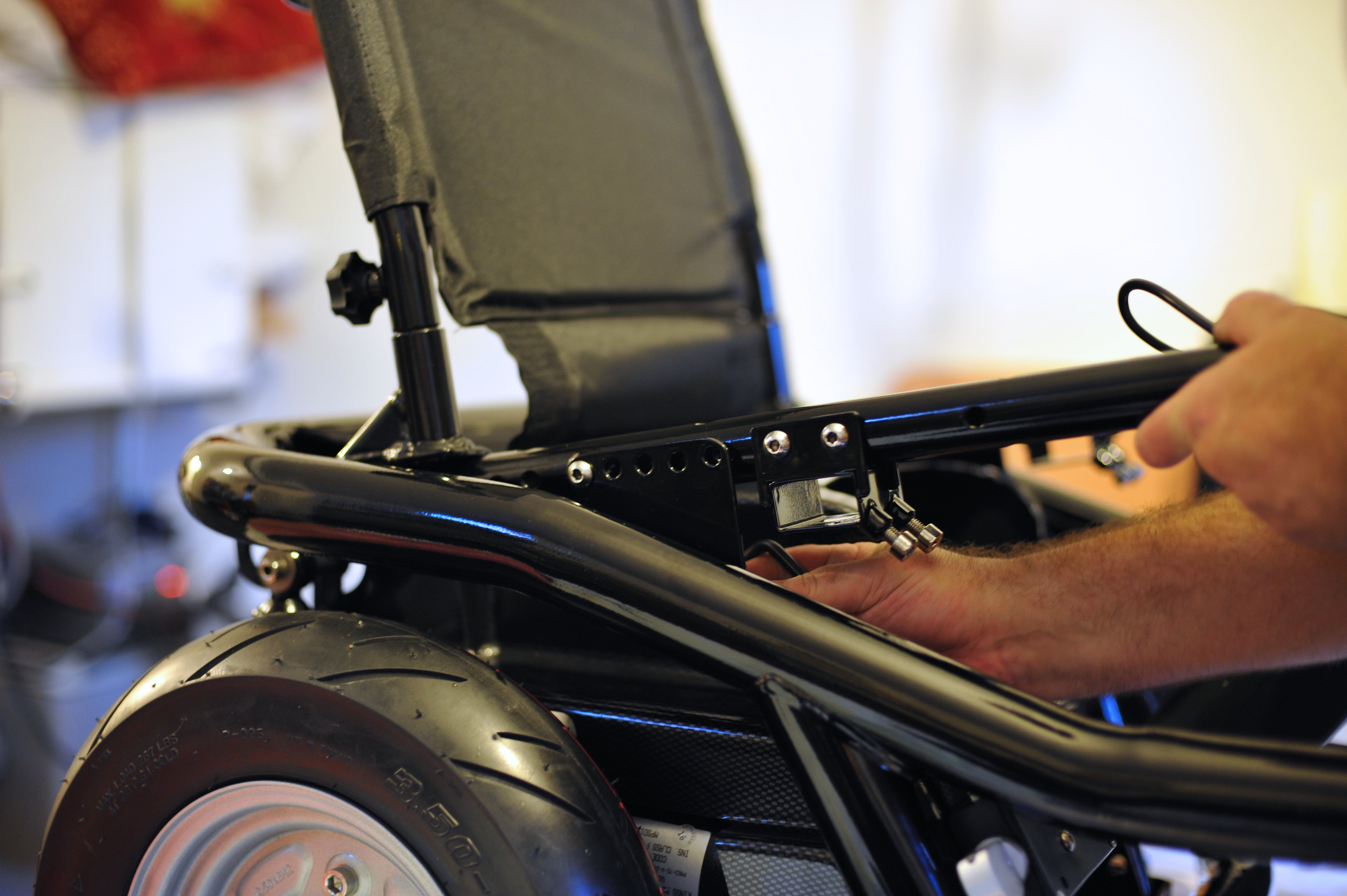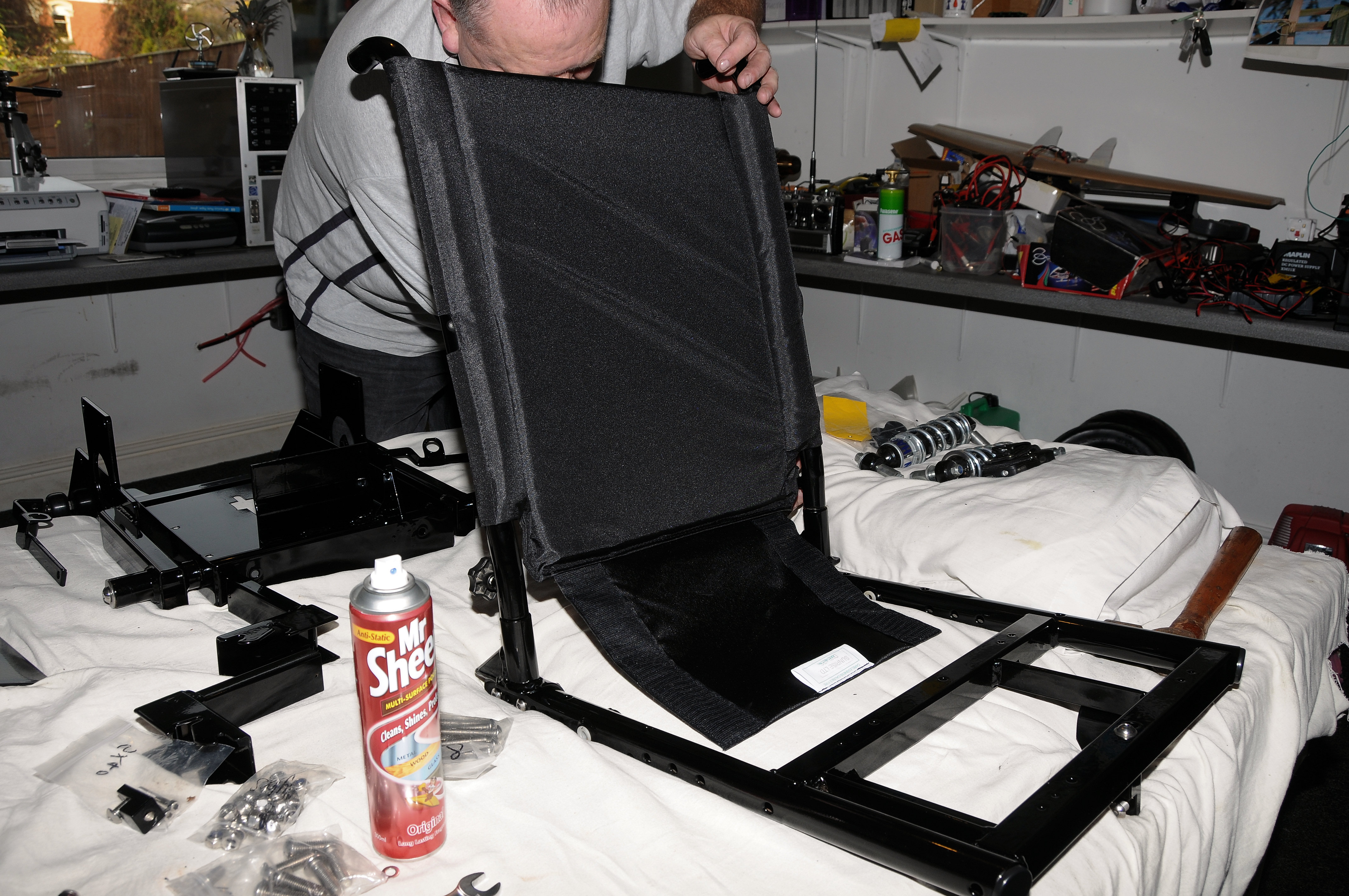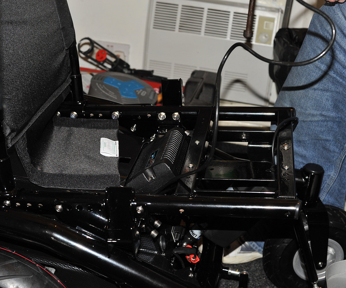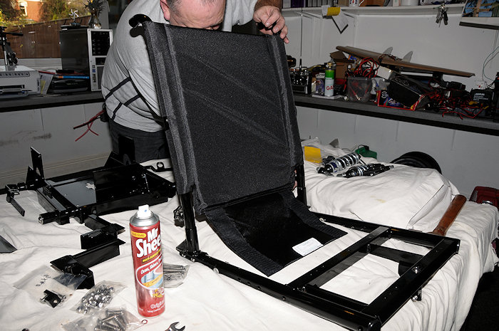Fitting the seat frame to the main chassis. Notice the new home made seat