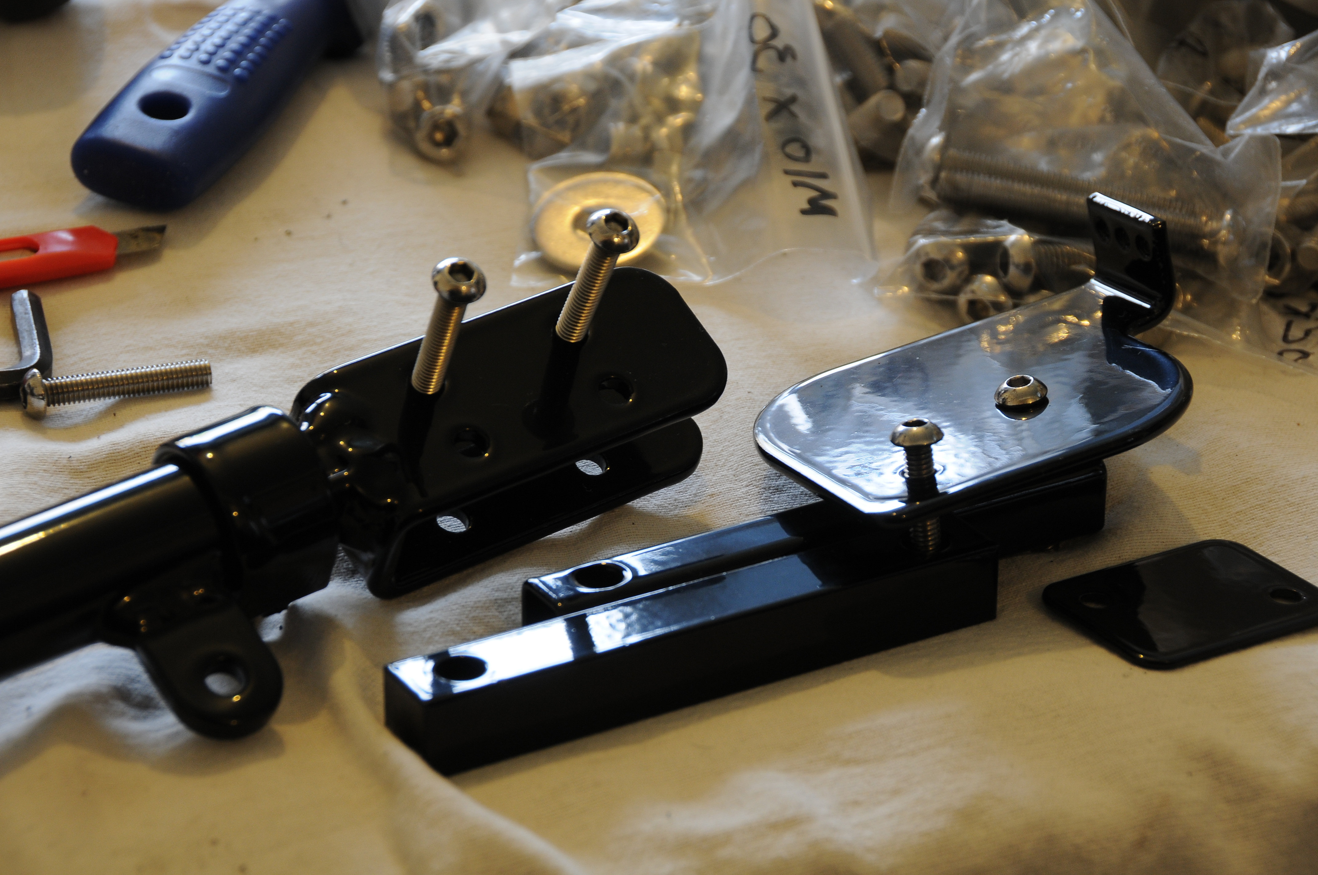Said bracket fitted (and powder coated!) with polished, greased stainless steel