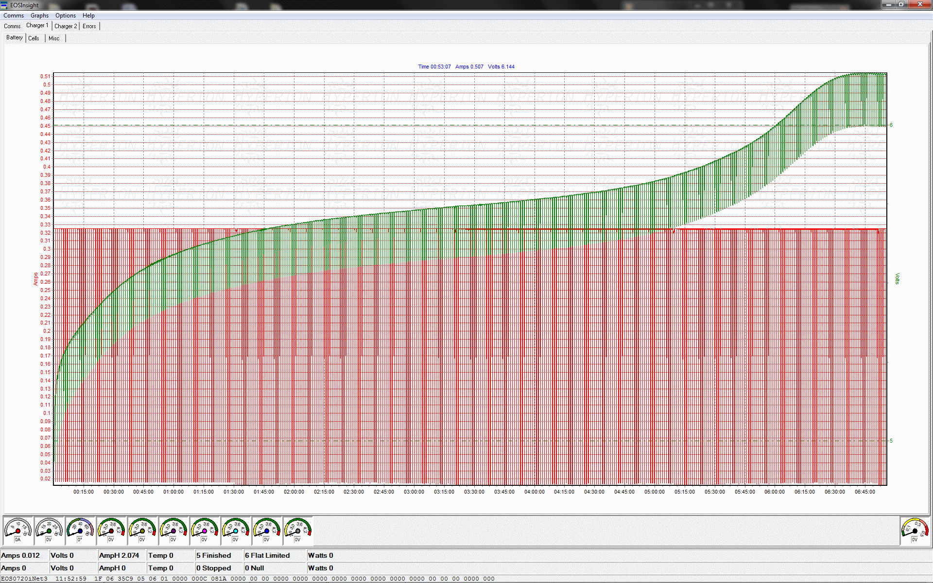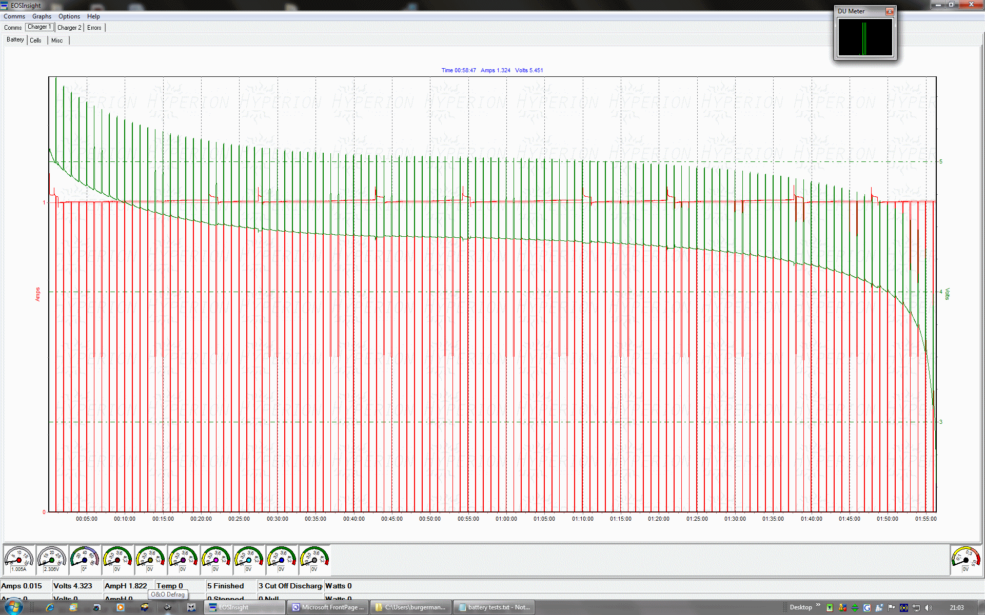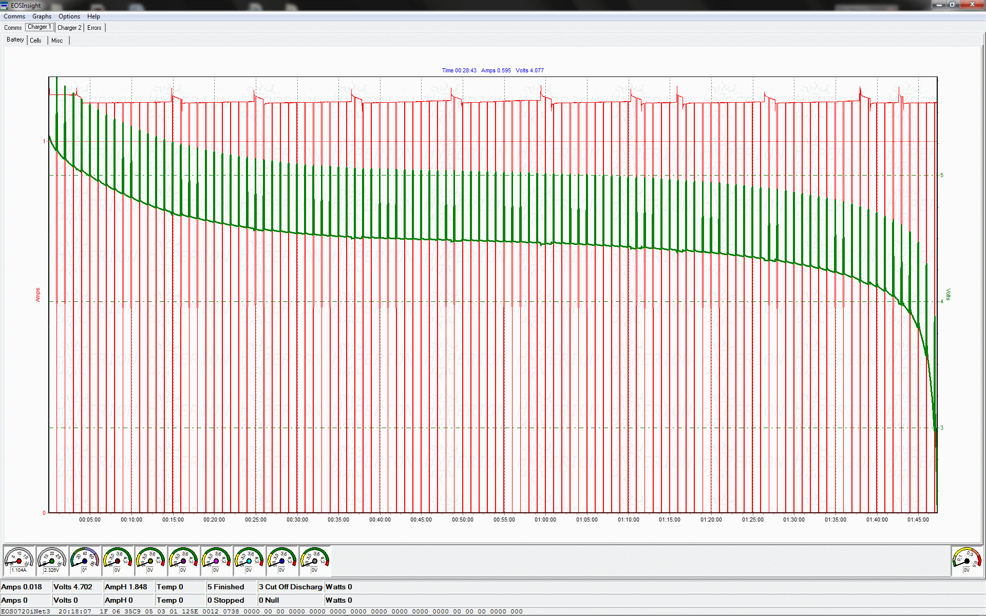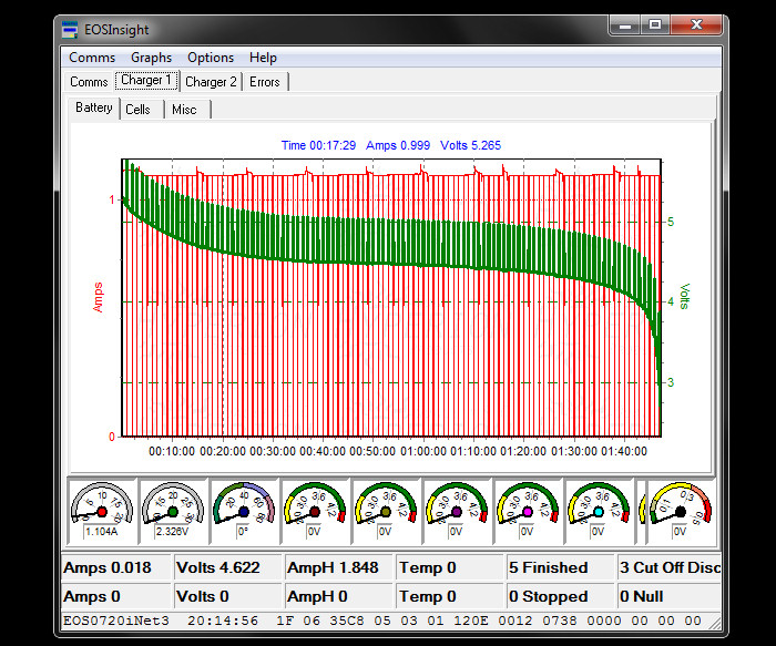 Charger/Battery tester and analyser above was connected to my Computer and used