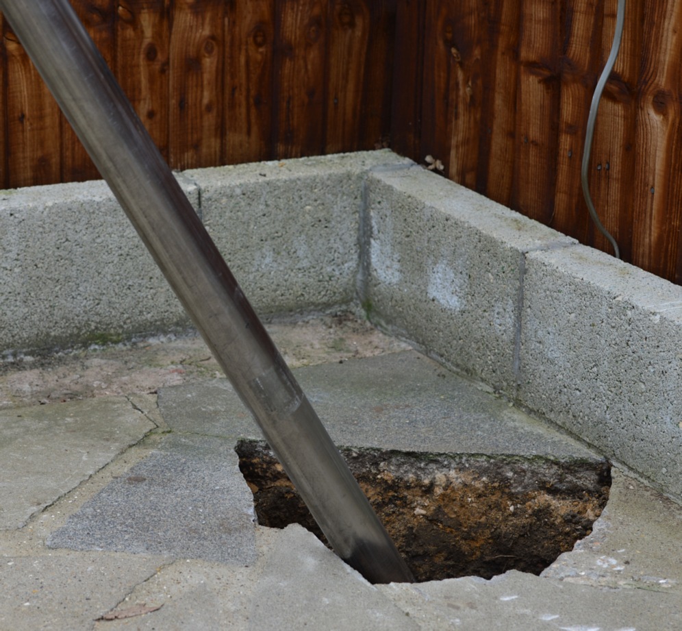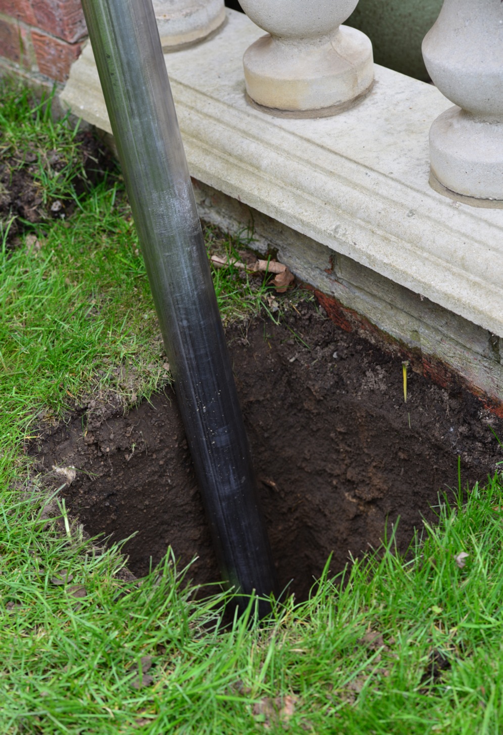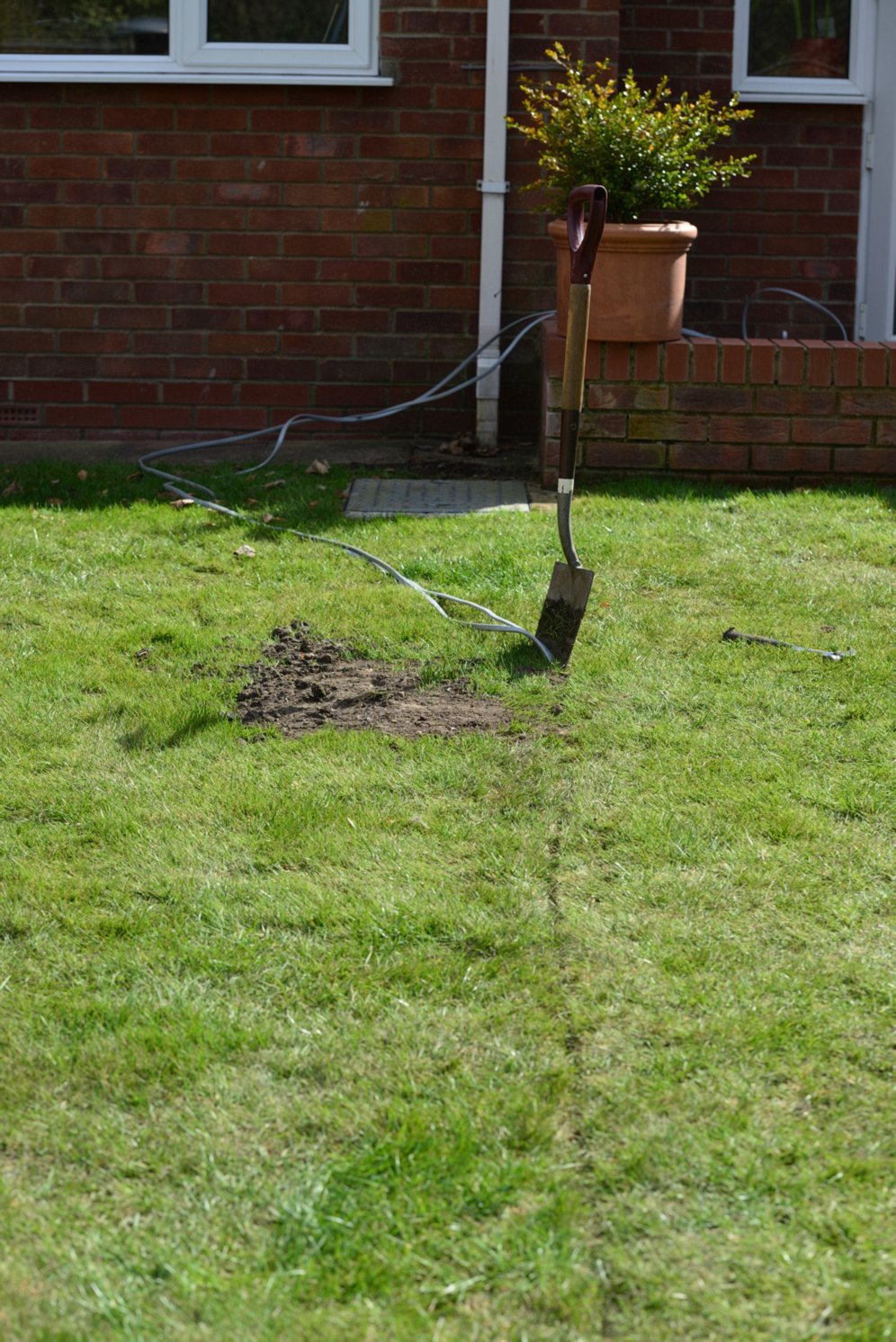 This is how the two cable got under the lawn... Ignore the mud, that's where a hollow was filled in when we (I say we! I mean my friend!) dug the post hole.