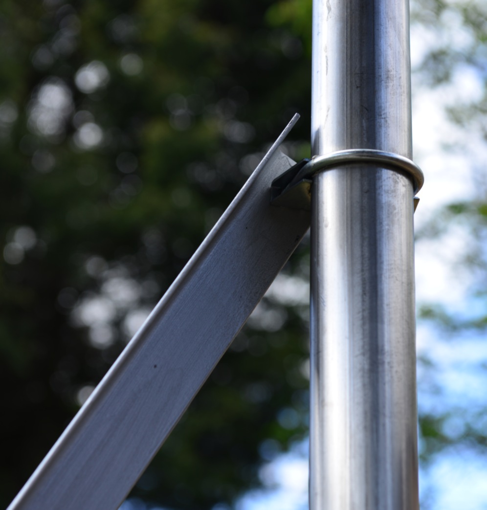 60mm Nylon bar drilled and tapped for a "hinge" M10 Stainless bolt. One each end of the 4 meter horizontal bar.