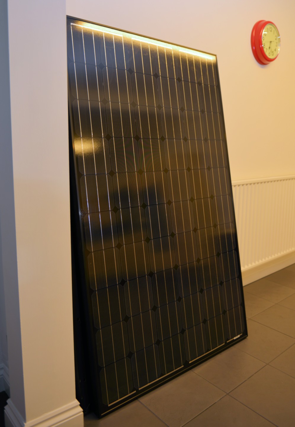 For this cheap eBay inverter you can have up to 600pW (panel Watts) or more. They do not overheat or die with too much panel power as you may hear on places like U-TUBE. Those guys are dummies. I have tested these with a full KW of panels on a 500 watt inverter for days in summer. They are just fine. But they top out at 450 watts OUTPUT. If you fit more, you run the risk of wasting the maximum panel output. But it will not happen very often in the UK! So I will use 2x or even 3x 250 Watt panels in total, for each 500 watt Chinese grid tie inverter. It has a 22v to 60v input, and can work with most panels. Unlike commercial systems that connect up panels in series, this inverter wants you to connect them in parallel. That's great! It means you can start with one panel, then add another later on. It alkso means SHADING one panel, has no affect on another panel, unlike the series connected commercial setups. You can lose about half the power on those if one panel gets shaded out of 10! So they make MORE power than commercial systems in shady or partially cloudy days. I ordered 2 panels initially. These are 250 Watt, 30.1V working voltage (37v off load open circuit) and they cost me £142 each delivered. These are big, at 1660mm x 992mm wide. The third one will be ordered in a few weeks when I saved up more money! You need to site these (in an ideal world) at approx 30 degrees from the horizontal in the UK, and pointed South. Other angles, and non south work too, but not as well. I can do this pretty easily as I can build a simple frame and put them on my flat roof. See pictures later. The angle, or the pointing south, isn't actually as critical as you may expect. Laid completely flat on the ground, you lose about 16 percent of the daily output. Facing east or west is about the same, or slightly worse. But its really not that bad. So if you have an east or west facing roof, don't worry! Still worth doing. I may put some along my garage roof eventually and connect another inverter up in there and it faces east/west... |