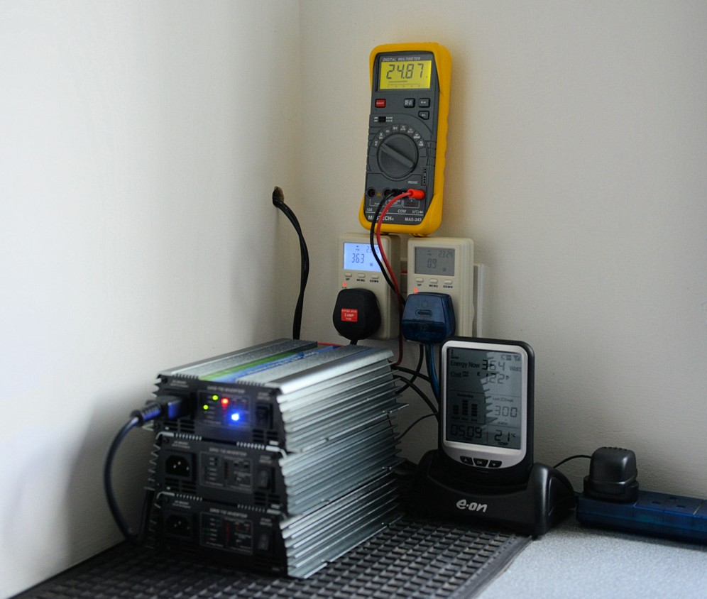 MUCH CHEAPER DIY So I did some maths and had a look around. Its possible to buy cheap Chinese made "grid tie" solar inverters on eBay. These are not government approved so you cant use them to get FIT's payments. And they may even be illegal to use. If that bothers you then read no further! They "claim" to be CE certified however. It doesn't worry me, since I understand what I am doing and will test and measure everything to make sure that they are at least safe, and that they are making efficient use of the expensive panels I am buying! But they are cheap enough, 92 percent (claimed max efficiency) - we will measure this and find out for sure. They very are simple to set up. Literally just plug them into any wall socket, connect up a Solar panel to them. You are done! This will generate SOME power even in winter or when there's no sun. (But not much! See later) How much power will you get realistically? Not a lot! You need 2x or 3x 250 watt panels on your roof in the UK to make best use of these inverters, (these PANELS are about £140 / £150 each delivered) and a cheap 500 watt inverter (£70 eBay) to save you around £80 to £100 a year from your utility bill if these panels are in a good position. The advantage is that you have a simple system, that you can add to later on as you wish, in small affordable stages. Once the cost of 1 or 2 or 3 panels and an inverter is long forgotten, and the ongoing bill has reduced, you can then just add some more panels, and add more inverters as you can afford them! And keep on doing so, year after year, until you generate as much or more power than you use.