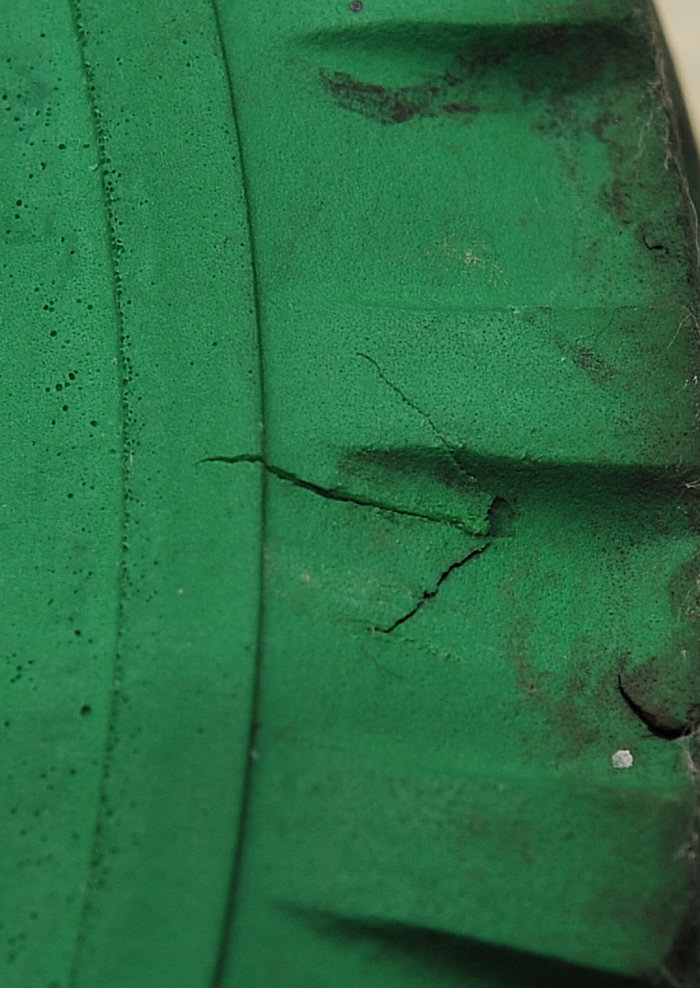 Another shot of that hateful green foam tyre showing how its tread area wears!